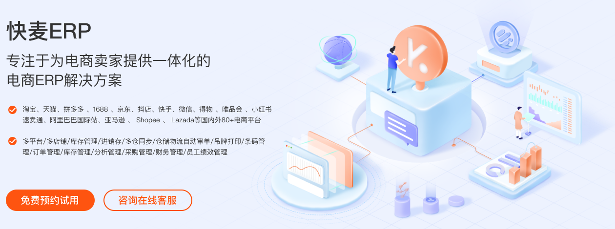 旺店通和聚水潭都還是不錯的,雖然沒有使用它們,但品質(zhì)高口碑大家都是有目共睹的。同樣的還有一款快麥ERP,我們店用了快麥ERP之后覺得使用起來確實還不錯的,首先它可以實現(xiàn)高復用和零代碼來幫助大賣家更有效地管理商品訂單。在商品入庫時,快麥ERP也可以支持快速采購,通過識別唯一代碼進行入庫和出庫管理。入庫后的任何數(shù)據(jù),企業(yè)也可以在后臺操作統(tǒng)計數(shù)據(jù),一鍵將商品分發(fā)到各個門店和平臺,實現(xiàn)統(tǒng)計數(shù)據(jù)的快速更新。
